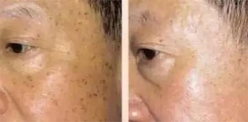 三天後見到黃褐斑萎縮,褐色變淡黃,10天左右,黃褐斑表面脫掉一層皮屑。